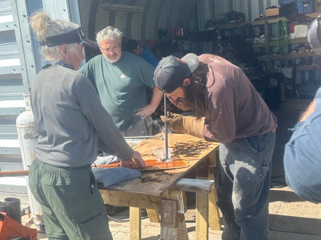 Until 4:00 PM, we are left with the incredible green, green pastures of York Factory. They lay before us, beckoning. This is not a party, but rather a Saturday in the park. Polar bears?Where? None of us consider them. Everybody is laidback and peaceful. Our York Factory Family joins us. Little do we know that when our boat arrives, we’re back on a time schedule.