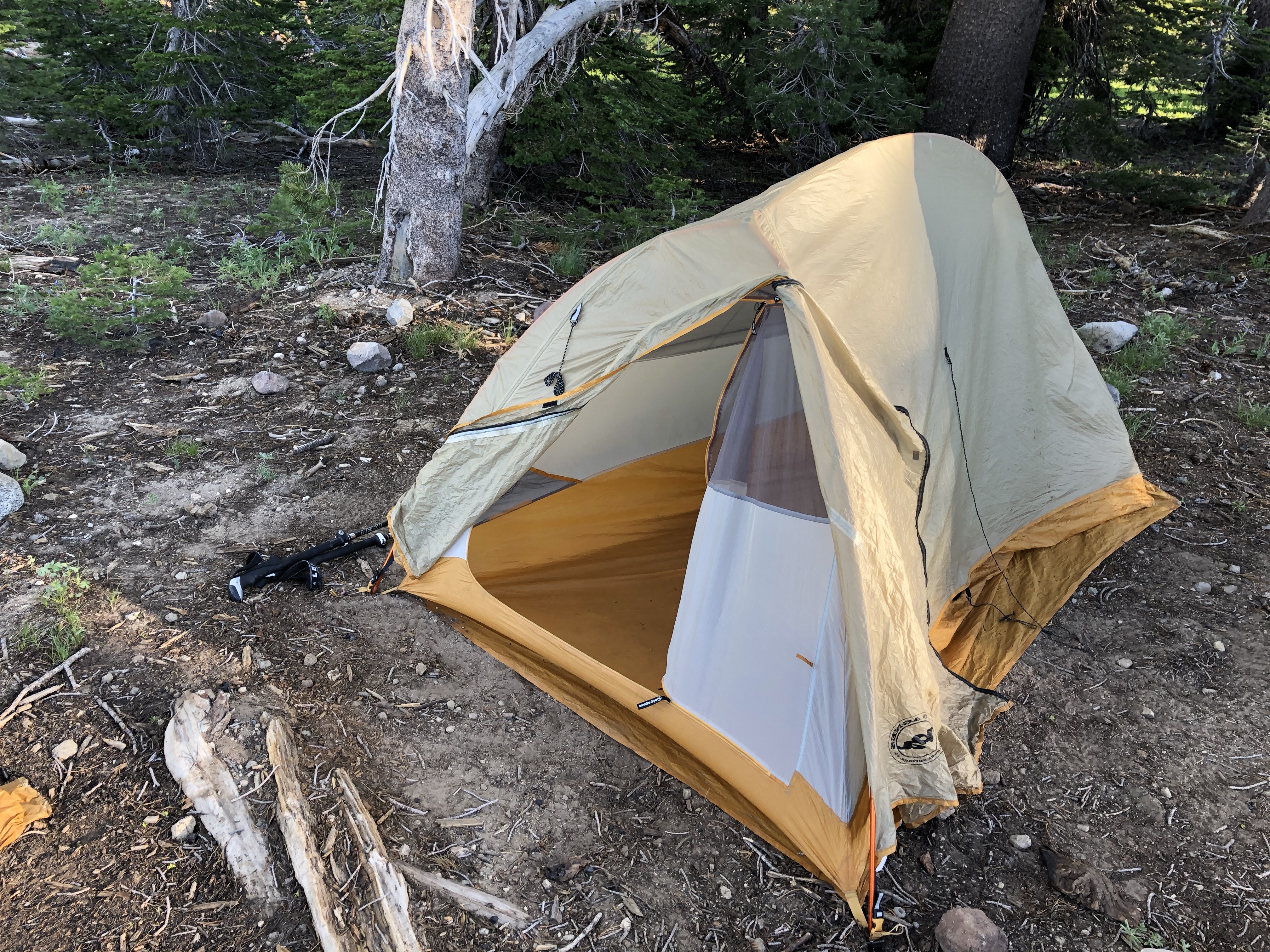 I found a good source for water from a pipe at snowmelt creek. I was shocked to hear a jet. I crossed a dirt road and met up with another hiker who mentioned how unusual it was to hear a jet. The trek to the campsite was up switchbacks. I sat and ate my dinner another P,B&J. Then I continued to the campsite on a saddle just over the pass. Nice site, clear and level. The wind picked up. It was beautiful, loud and wild. No one was there except me. There was no loneliness, only mountain peace.