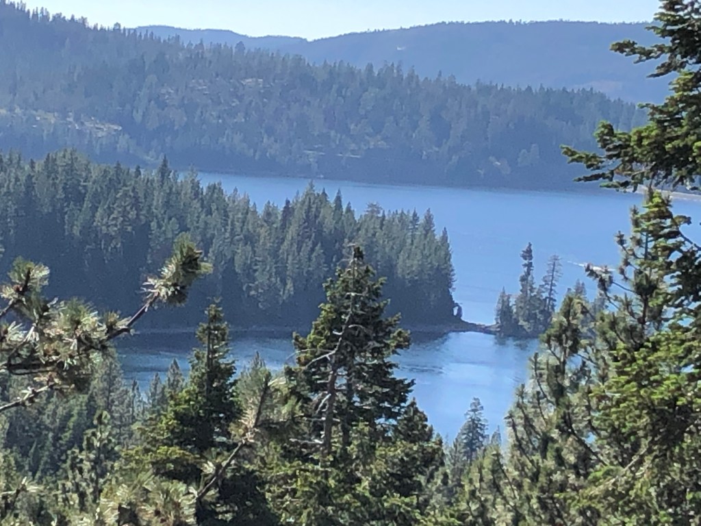 Five miles forward, I started to hear “civilization.” It sounded like shouting voices, and jet skies. I could see Jackson Lake. By that time my shoulders were sore and my blisters hurt. I was coming down a hill unprepared for what awaited me. The trail ended at a paved road. Usually when you come to a road the trail clearly continues on the other side of the road. Nope. There was a small group of teenagers playing football in the street. I didn’t expect they’d be of any help and they weren’t. I walk back and forth on the road looking for an arrow or a sign or a local person. I did not whine or vocalize my frustration. I wasted about 45 minutes when a guy in a truck slowed and asked it I needed help. He thought I would get back on the trail across the bridge and to the right. It didn’t look like it could be the PCT or any trail. And then I saw the little triangular PCT sign on a tree. In three miles I found the campsite. There were several sites. All mi were empty. I had eaten dinner, another P,B&J while walking. I had spotted an evening grosbeak. It was almost 8:30 and I was ready for bed.