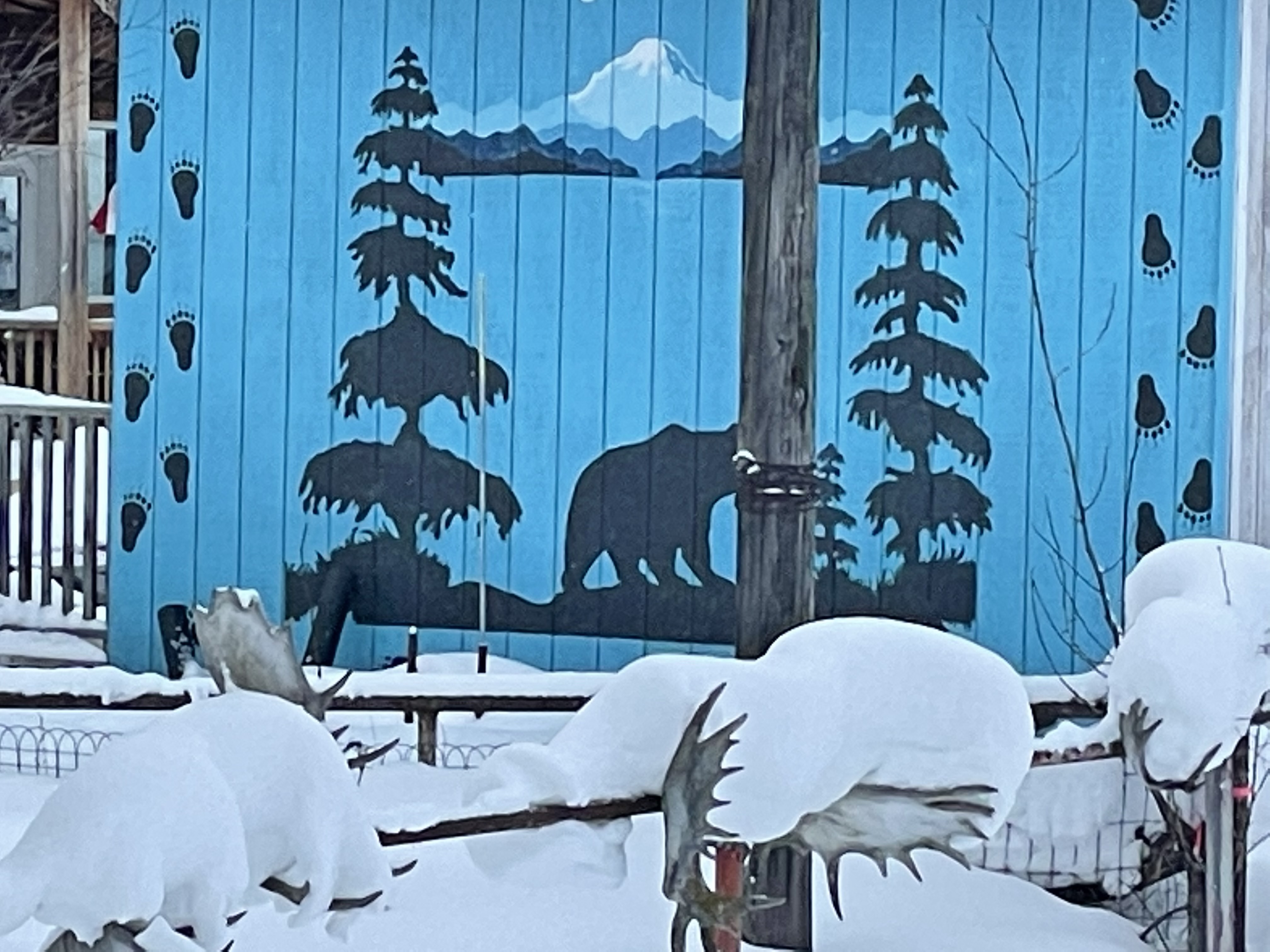 A mural painted on a shed. I’m happy to know that the antlers decorating the fence could be made of antlers that were shed. The worldwide population of moose is quite small.