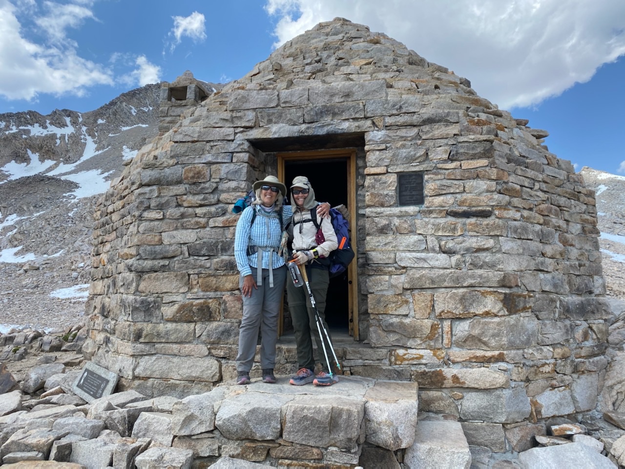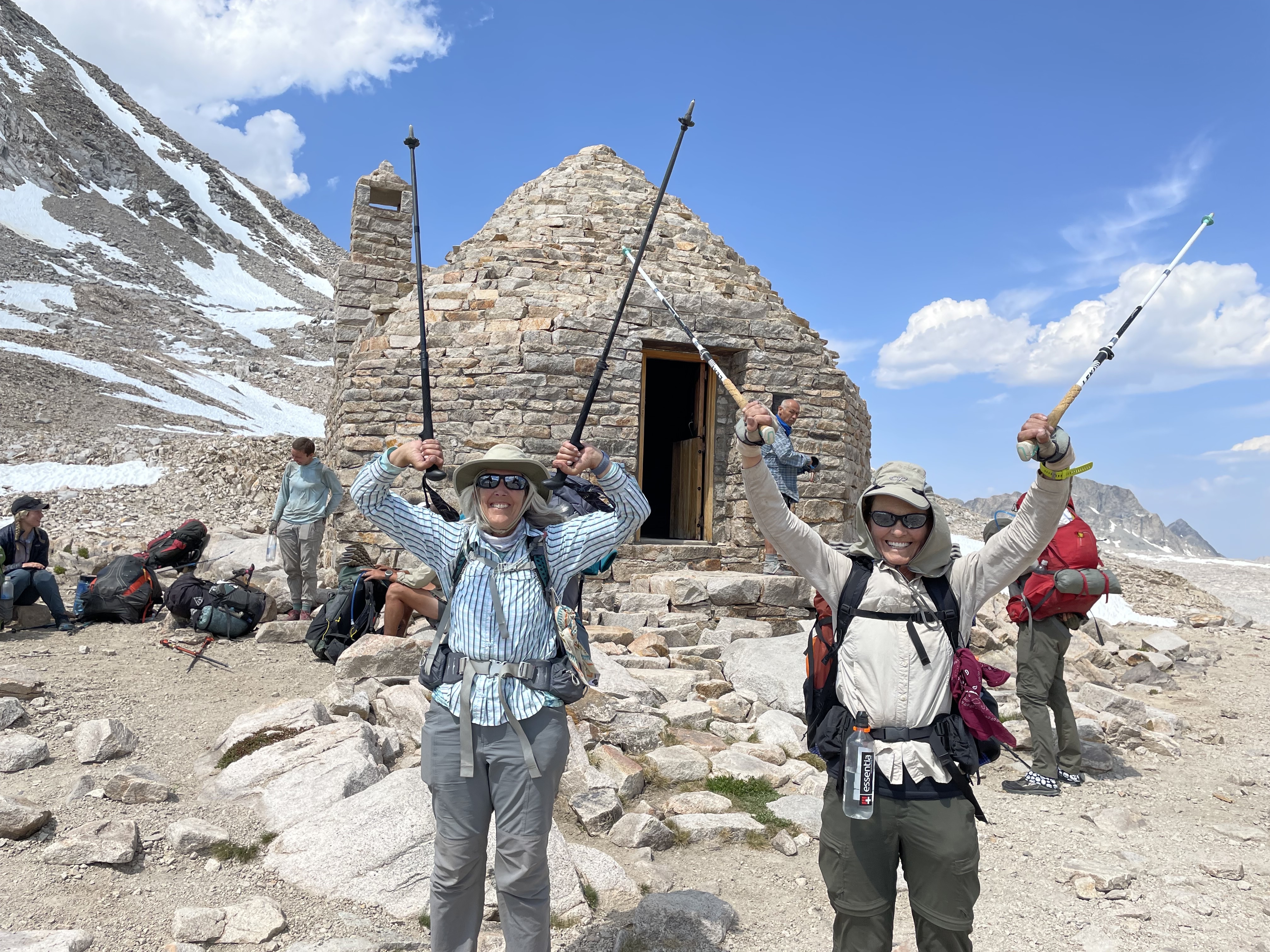And it seemed in no time we reached Muir Hut. Following the obligatory poses and pictures we were ready to climb down. Looking down the hill, we faced the truth. There were many patches of tricky terrain ahead. Ankle breaking rocks large and small served as detours around unstable snow patches obscuring the trail. Robin does not like downhill, and damn if she didn’t fall. We both were feeling low. Our diets were lacking. So, we stopped and set up the stove right on the trail. We chose to make the only freeze-dried breakfast we had. It tasted like the packaging. We it to our garbage at the bottom of my bear canister.