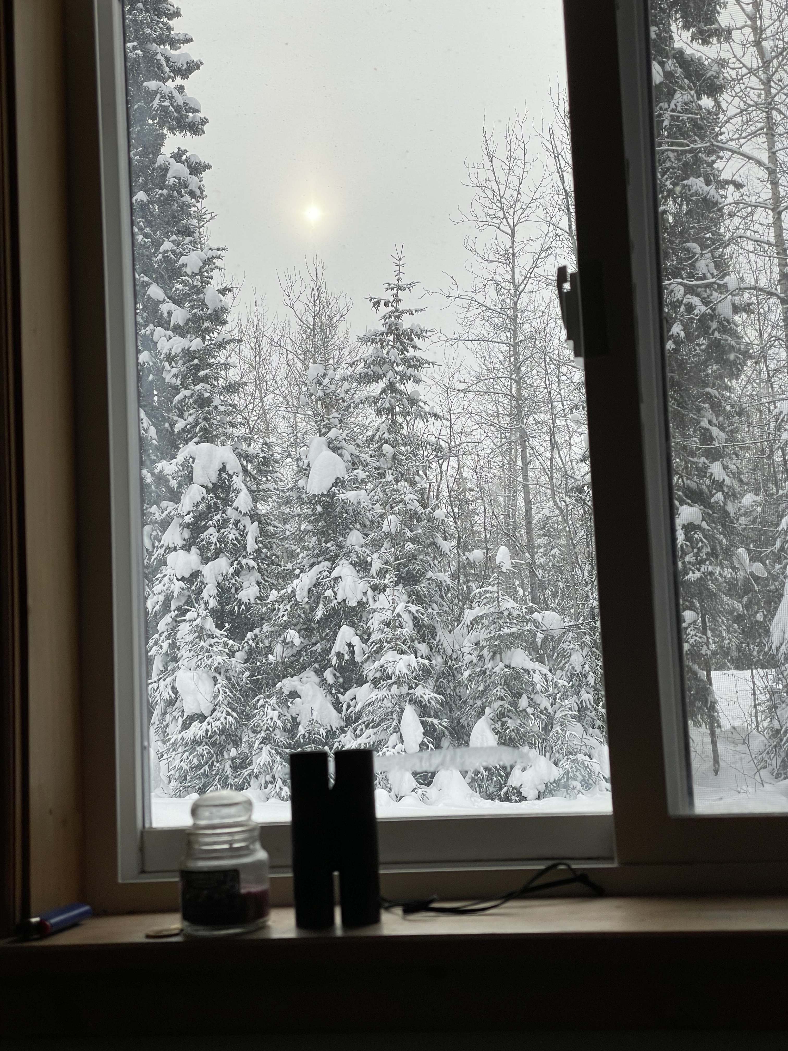 I met up with Elsie on the street. I wanted to know why I haven’t see any animals. She said she saw moose tracks, but they’d been gone since fall. She saw a fox on the other side of the River, but she didn’t really see it a friend did. The rabbits are gone. The one wolf had an injured foot. And the “chickens”, spruce grouse, are all skinny. She didn’t give me much hope of seeing animals, but at least she gave me assurance, I wouldn’t be attacked by a moose on my run. It was so hot today, I didn’t need my mask, goggles, down jacket. Freedom. But I swear those were moose tracks I saw. And two guys flew out the road on snow machines dressed in camouflage with rifles slung across their backs.