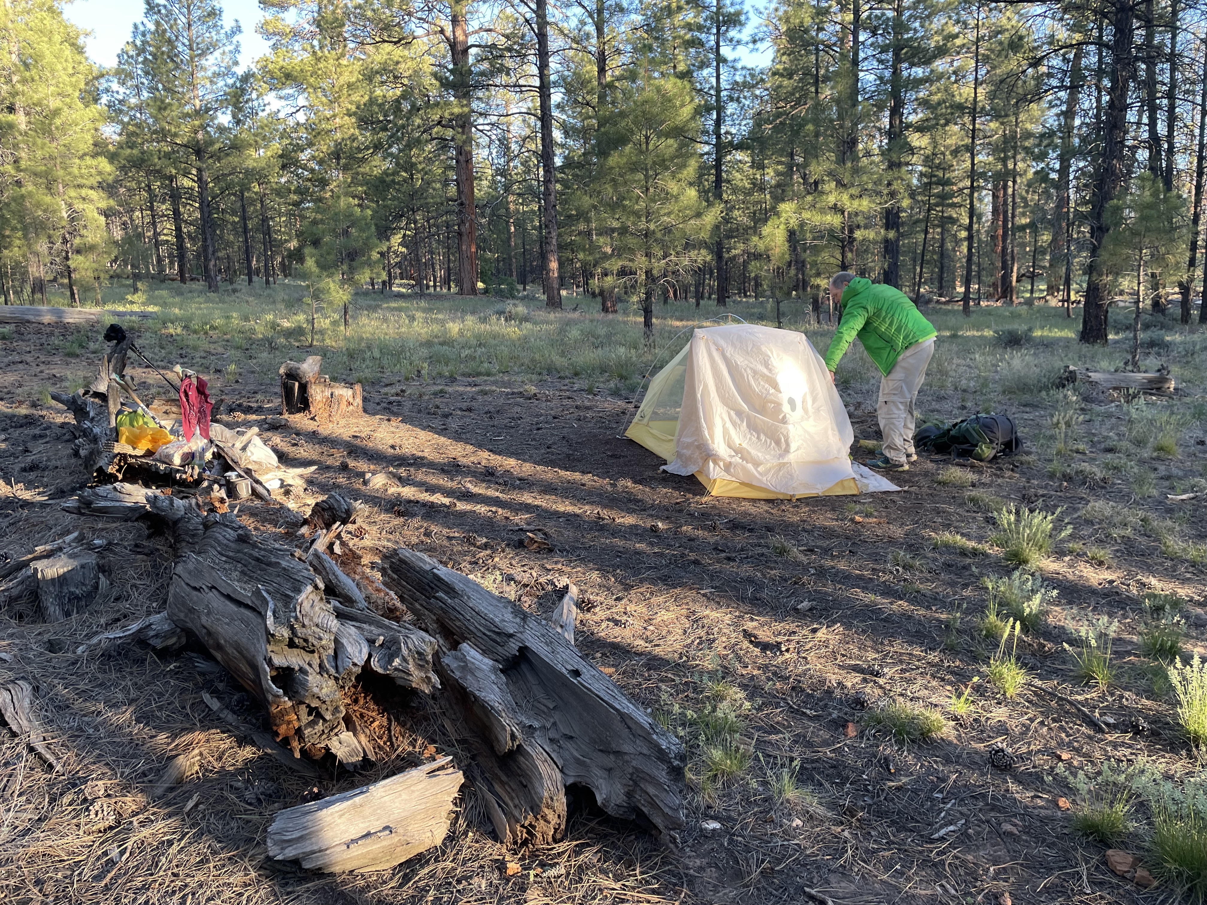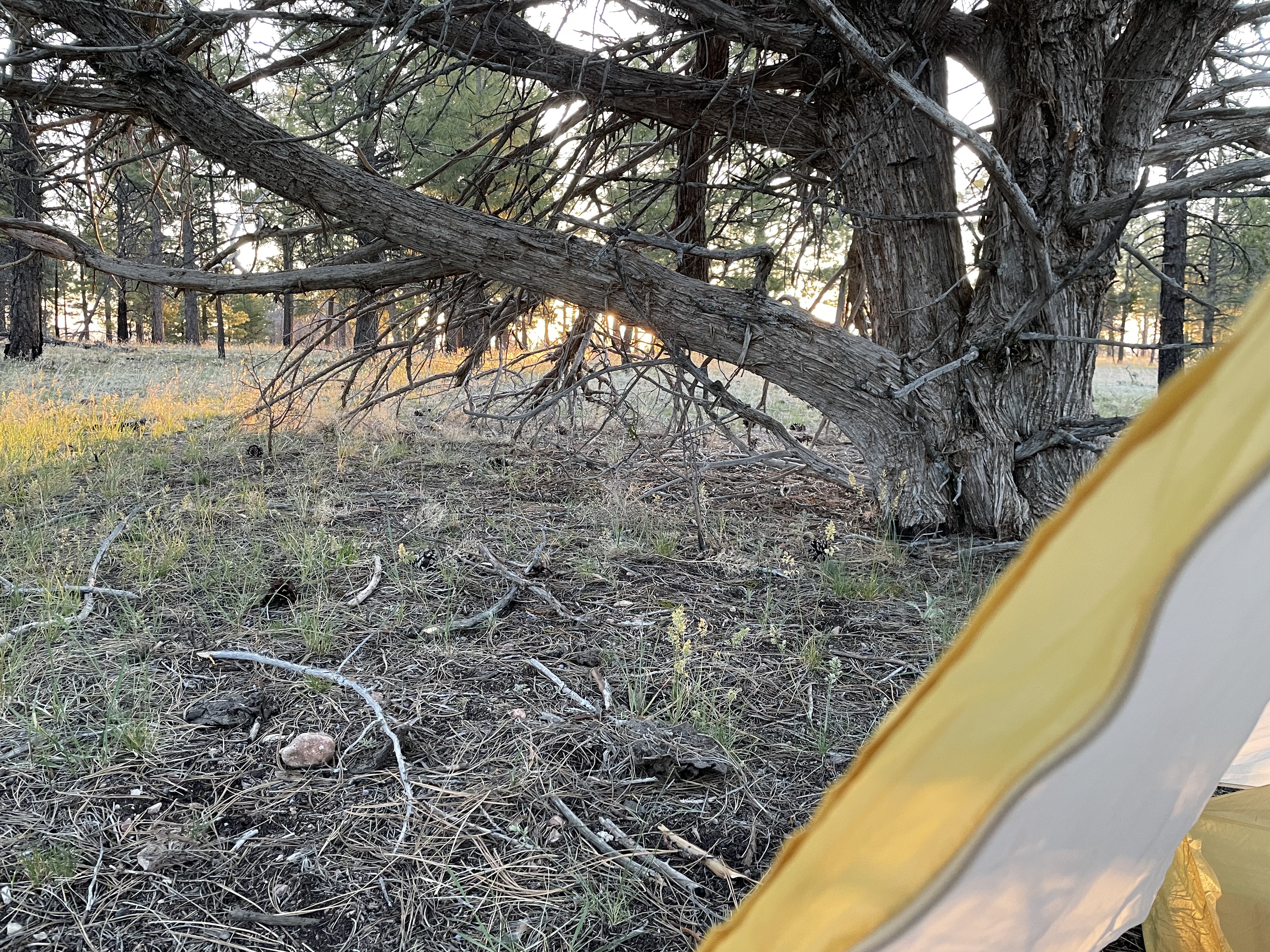 We hiked on until sunset was imminent. We looked for an open space to put up our tent hoping to get some morning sun. The wind was still roaring.