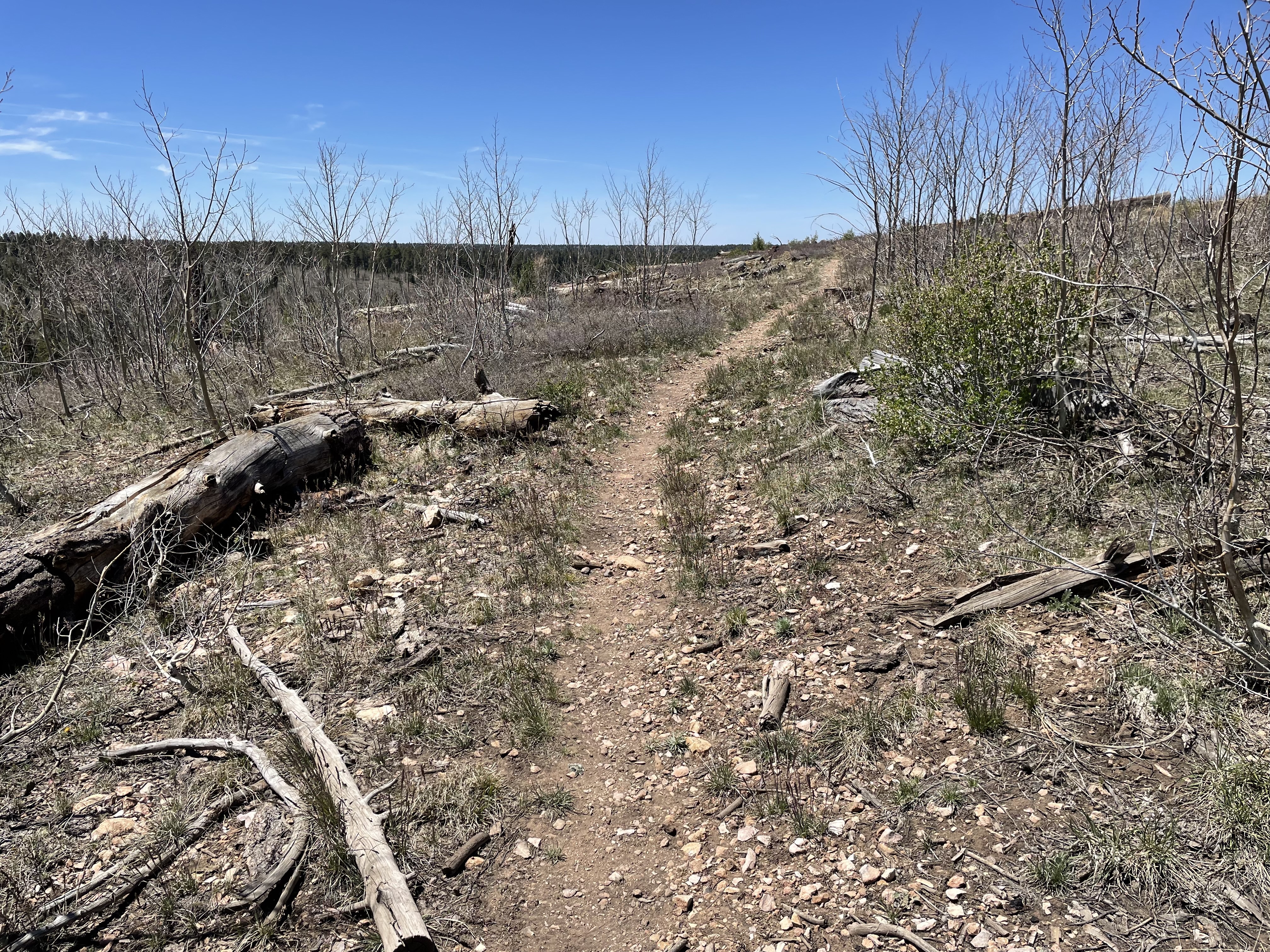 The wind sounded unfriendly again. I see why their forest fires are so bad. I’ve had a many first-hand views for 11 days, tramping through an amazing number of burns. We camped in the first stand of trees we found last night thinking finally we left the devastation behind. But this morning we walked right back into it and then the trees started to appear. The large ones charred, the new growth sparse, the aspens replacing pines.