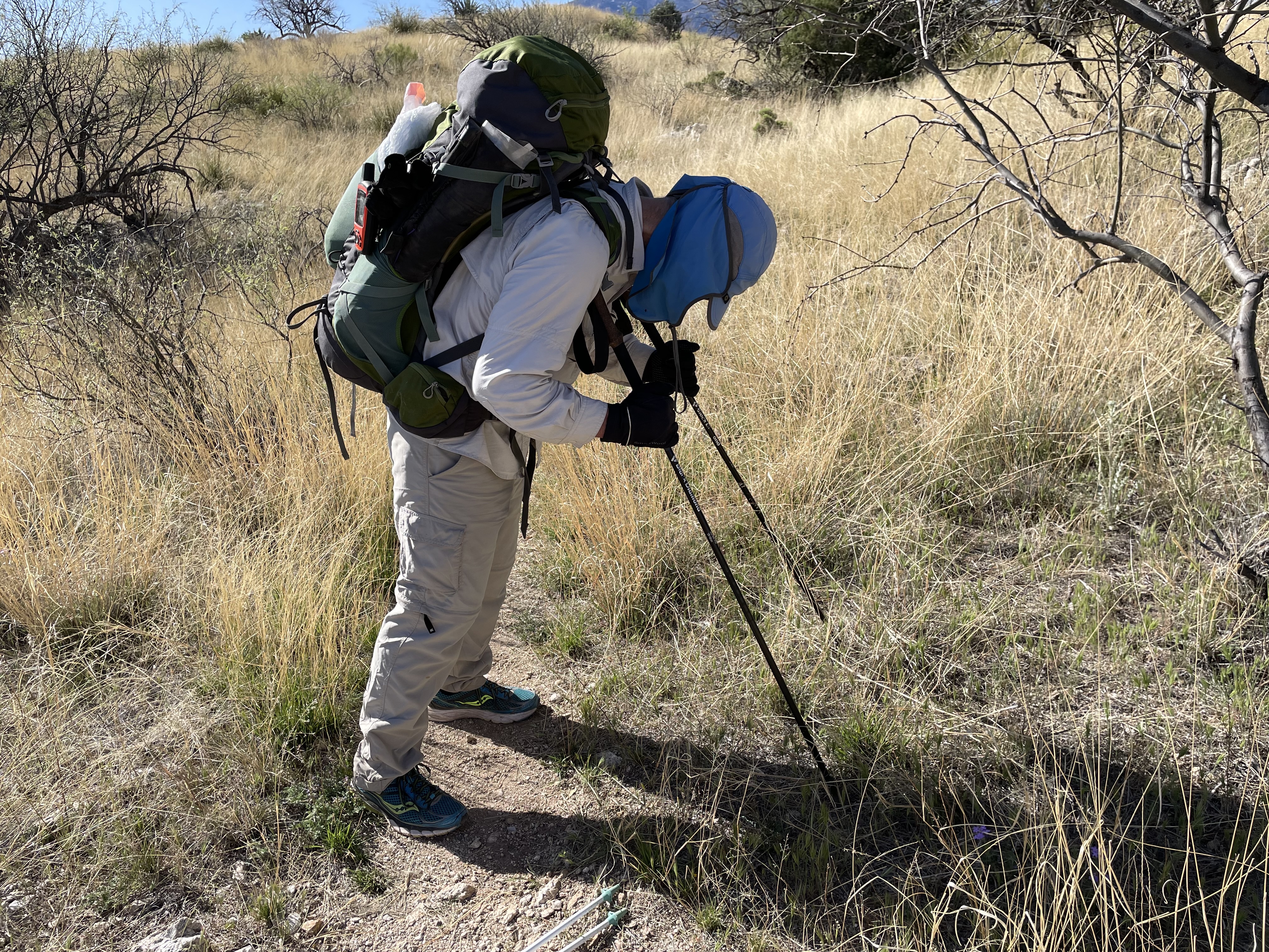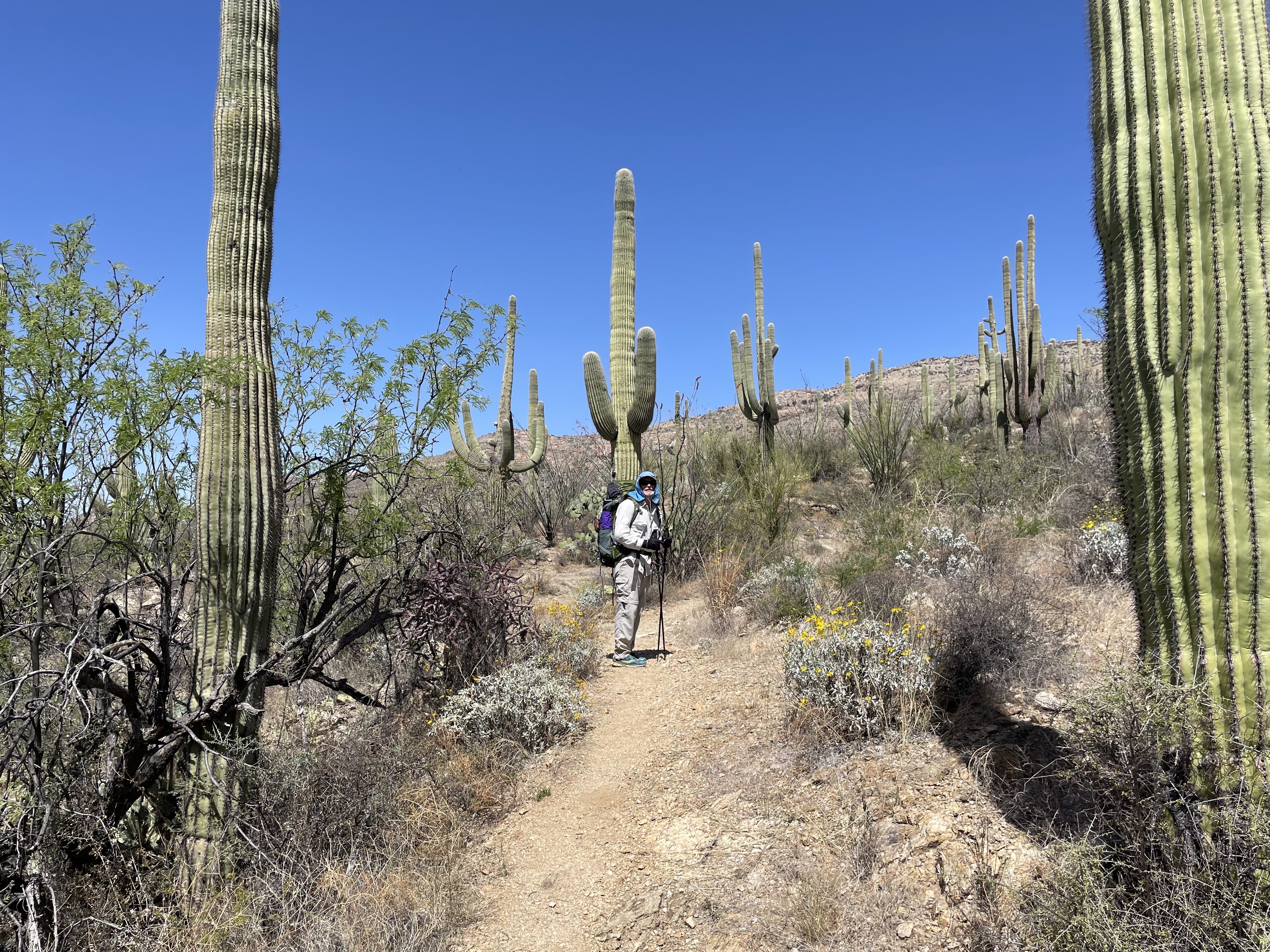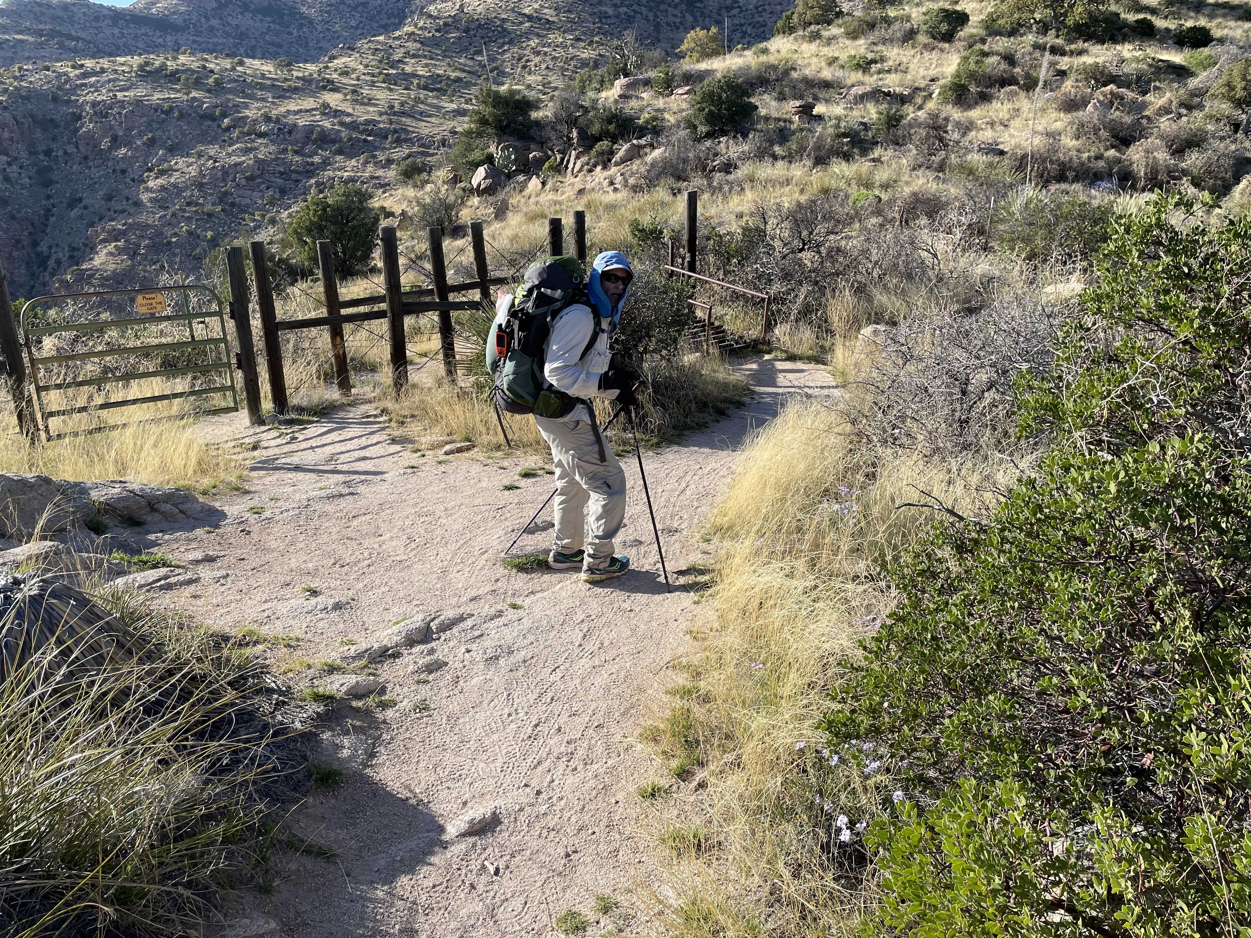 We hiked down 2.5 miles to reach the official AZT. We had another 8 miles before we’d arrive at our campground named Grass Shack. We had reserved a spot here on Recreation.gov last night. We were heading into Saguaro National Park, and you can only camp in one of their camps.