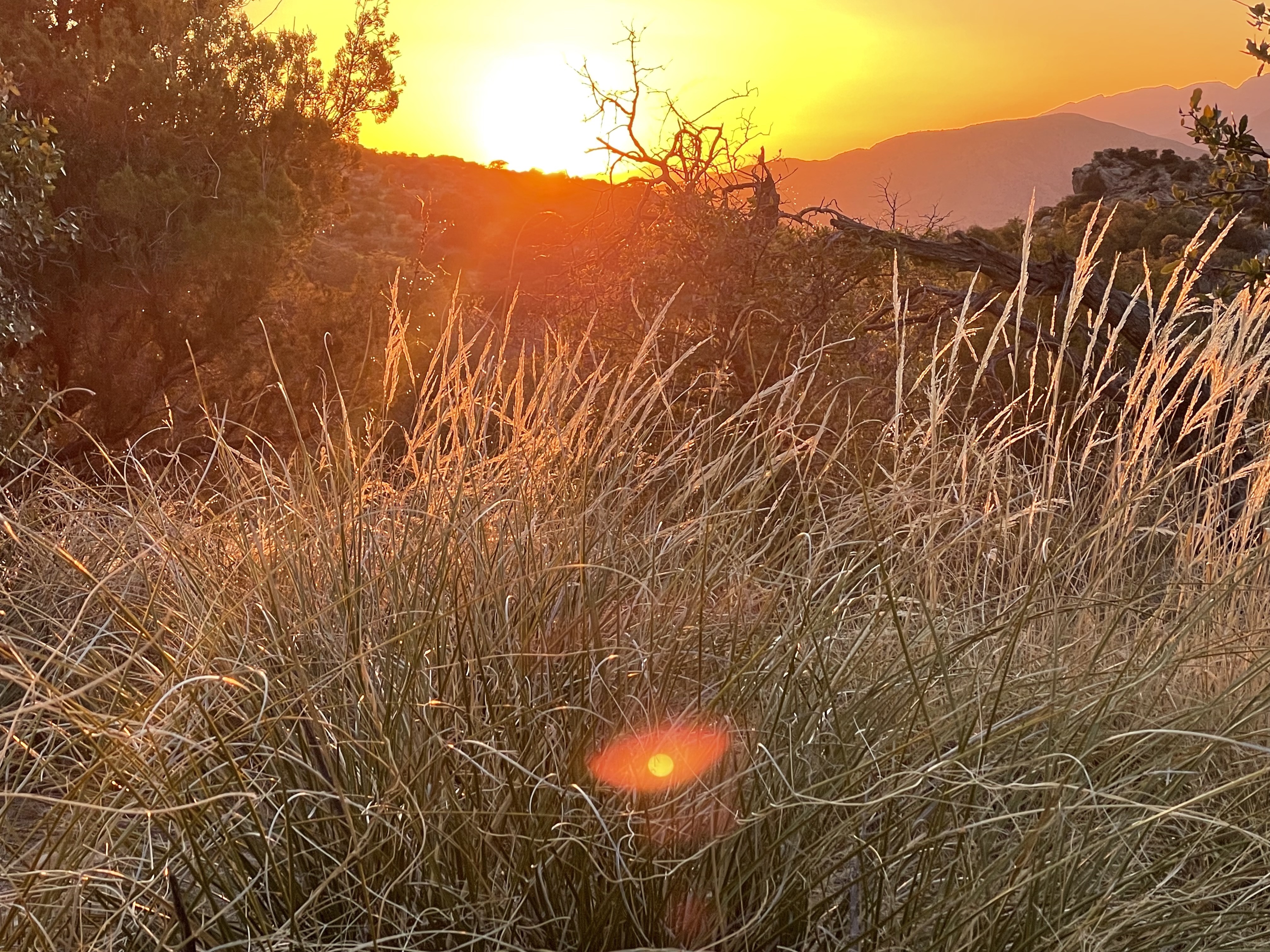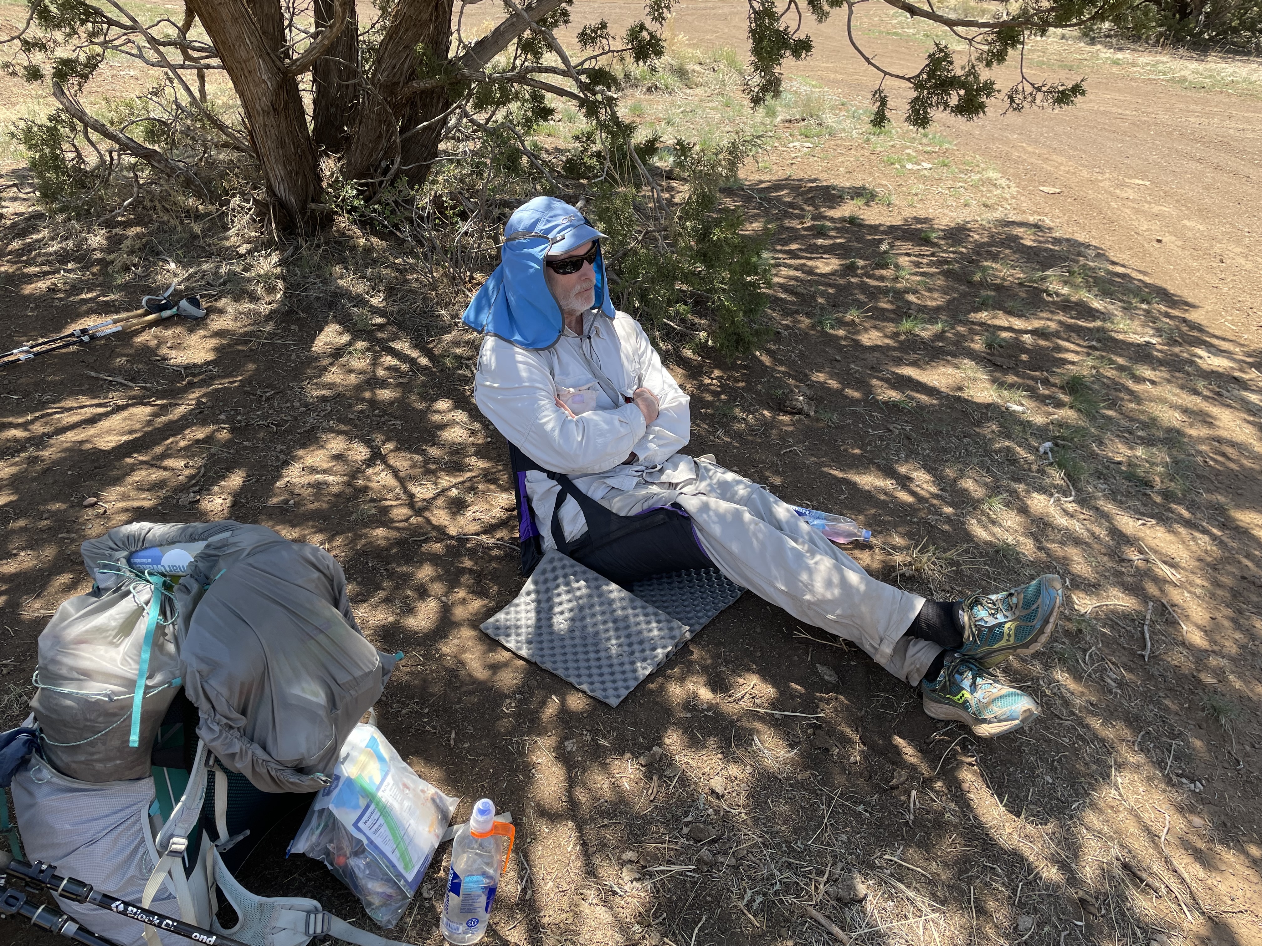 We stopped at 5:30 by a stream to get water. Our last source in 30 miles. Our packs will be heavy with water tomorrow. We were fortunate to find a flat spot to pitch our tent. We ate dinner with a Scott’s oriole flitting around and serenading. We only made it 13 miles. Will start before sunup tomorrow.